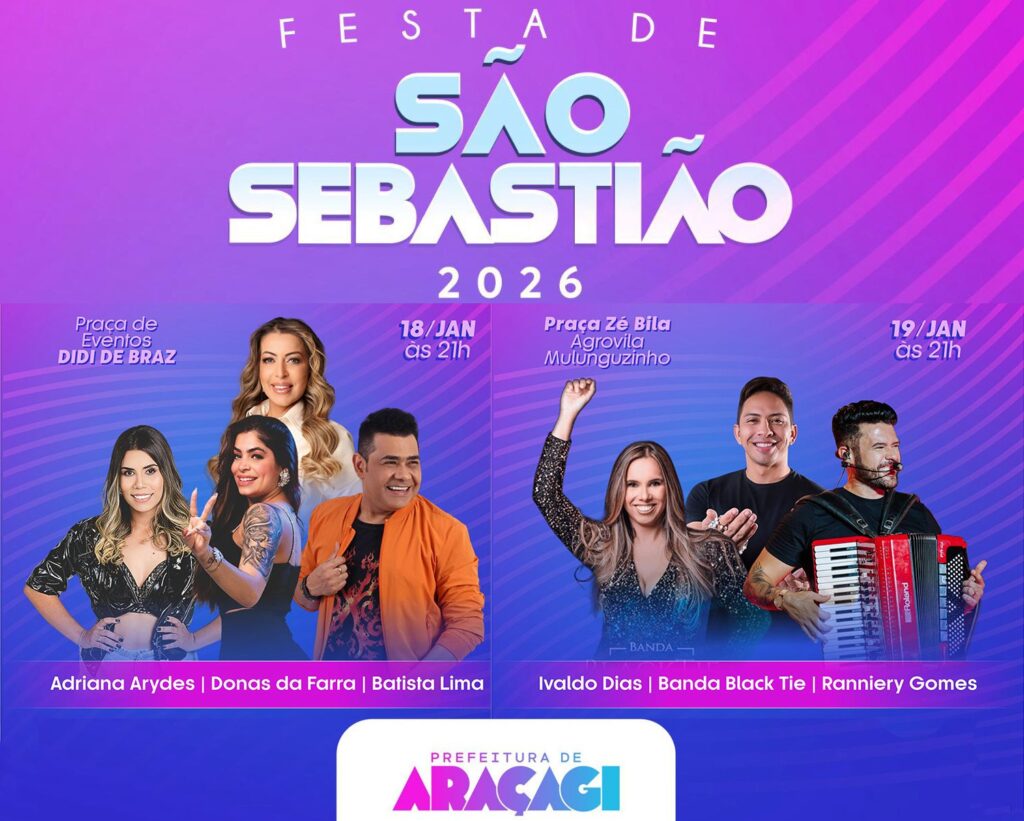 Mantendo a tradição, a prefeita de Araçagi (PB), Josilda Macena, anunciou oficialmente a programação da Festa de São Sebastião 2026. O evento, que une celebrações religiosas e shows populares, terá apresentações em praça pública no centro da cidade e também na zona rural nos dias 18 e 19 de janeiro.