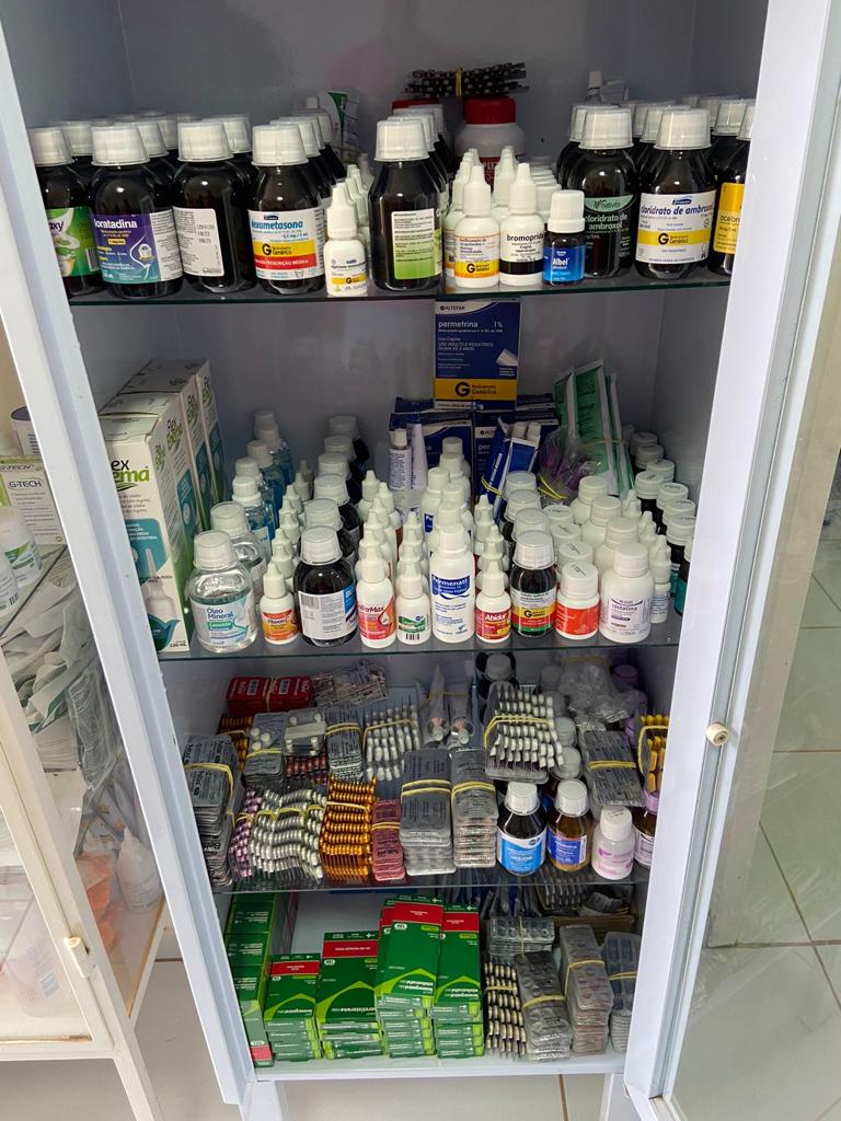 A Farmácia Básica do Posto Médico Ângelo Batista está repleta de diversos medicamentos, para atender a população.