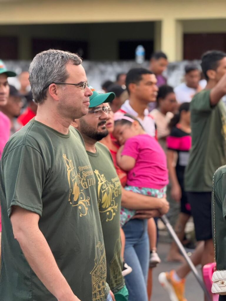 Ao lado do vereador e presidente da Câmara Municipal de Lucena, Mersinho da UP, o deputado George Morais prestigiou a celebração, que está em sua 36ª edição, configurando-se como um dos maiores eventos religiosos da região.
