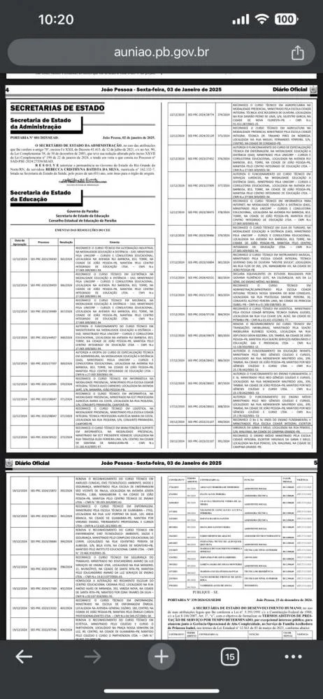 O Governo do Estado da Paraíba, na edição do Diário Oficial do dia 02 de janeiro de 2025, publicou a regularização dos cursos técnicos das escolas da rede estadual de ensino.