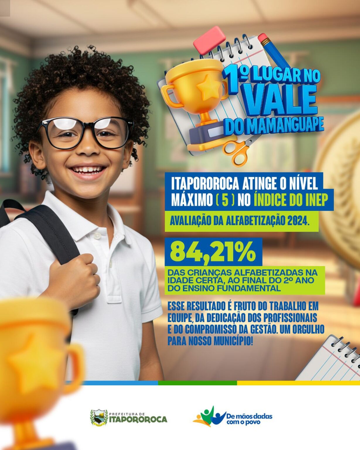 Com esse desempenho, Itapororoca consolida-se como referência em alfabetização no Vale do Mamanguape, reforçando que investir em educação é garantir desenvolvimento social e oportunidades reais para as novas gerações.