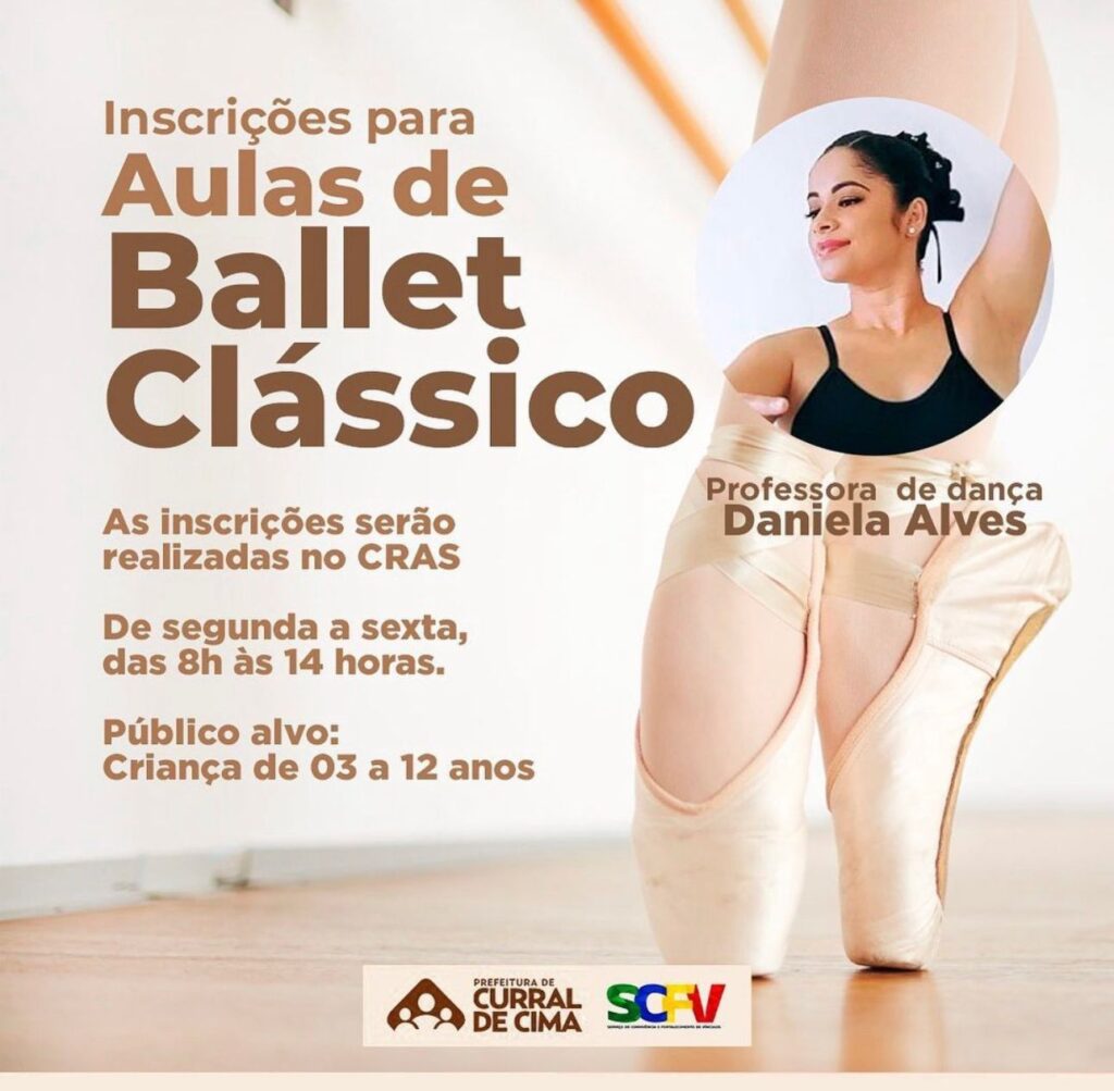 A Prefeitura Municipal de Curral de Cima, através da Secretaria de Assistência Social e SCFV, ofertará aulas de Ballet Clássico. Na noite de ontem (22), a prefeitura usou as redes sociais para divulgar a abertura das inscrições.